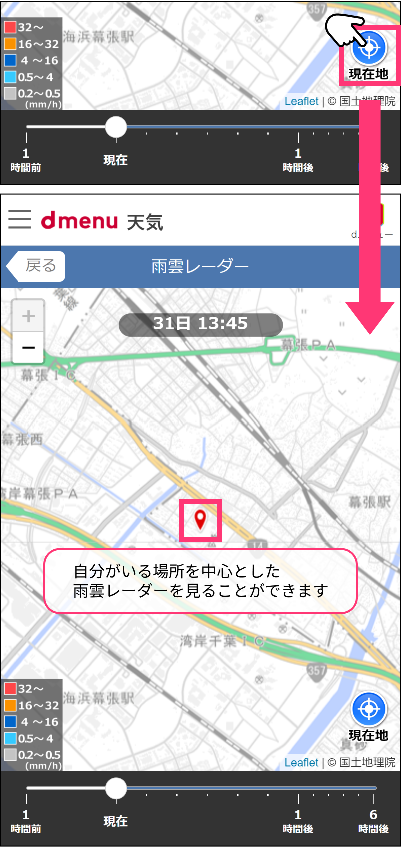 ②現在地周辺の雨雲を見る